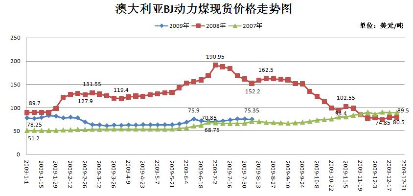 澳大利亞BJ動力煤現貨價格走勢
