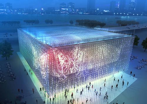 95攝氏度左右的熱水,在工業(yè)領(lǐng)域大量存在,卻被白白丟棄或需要降溫后再使用。在中國2010年上海世界博覽會(簡稱上海世博會)上,上海企業(yè)聯(lián)合館力圖改變這一狀況,將在全球率先實(shí)踐低溫?zé)崴l(fā)電技術(shù),探索人類利用能源的全新途徑。圖為上海世博會上海企業(yè)聯(lián)合館夜景效果圖。