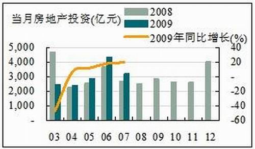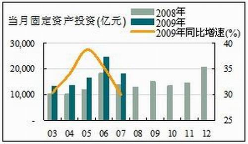 7月份城鎮固定資產投資額為17,833.66億元,較6月份有所回落;從同比增速看,繼6月份略有回落之后繼續下滑,但仍保持在29.94%的高位水平。