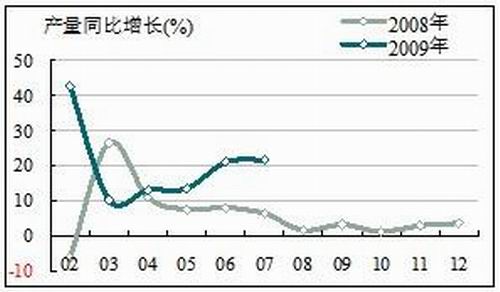 2009年1~7月發布的運行數據顯示,產業發展良好,全國水泥累計產量同比增速繼續創年內新高(剔除1~2月份),