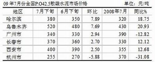 ——7月,水泥市場的還未進入銷售旺季,全國大部分地區水泥價格平穩,東北和西北價格成為7月的亮點。