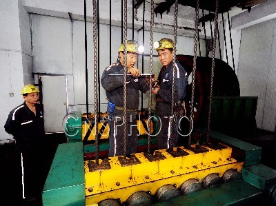 9月16日,在安徽淮北礦業(yè)集團臨渙煤電公司主井口,技術(shù)人員監(jiān)測PLC提升系統(tǒng)運行數(shù)據(jù)。當日,具有世界先進水平、國內(nèi)首臺礦井提升機HLB型感力機械手捕繩式防滑溜車保護裝置正式投入運行。該系統(tǒng)采用微芯片電腦、感應(yīng)控制器聯(lián)合控制,絞車房控制系統(tǒng)直接監(jiān)控礦井罐籠運行情況,一旦出現(xiàn)滑繩、溜車狀況,系統(tǒng)PLC進入自動控制狀態(tài),使感力機械手16根鋼絲繩5秒鐘內(nèi)產(chǎn)生390KN控制力,直至罐籠緩慢安全停穩(wěn)。該系統(tǒng)有中國礦業(yè)大學、淮北礦業(yè)集團聯(lián)合研制,由國家安全局、國家煤炭技術(shù)學會共同進行為期一年的試驗合格后,正式投入生產(chǎn),同時填補了國內(nèi)該項科研空白。