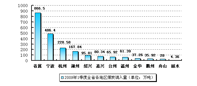 一季度全省煤炭調出總量為1126.89萬噸,其中在省注冊的企業調出量為732.15萬噸;其次是寧波地區、湖州市,分別為188.22萬噸和76.72萬噸,麗水市的調出量最少,僅為0.43萬噸。