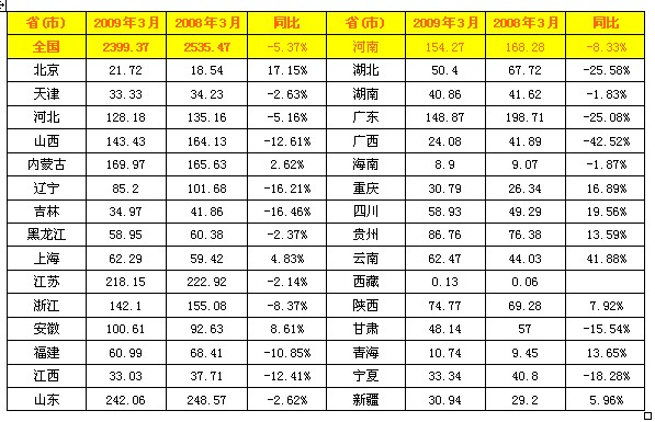 2009年3月全國火電發電量統計