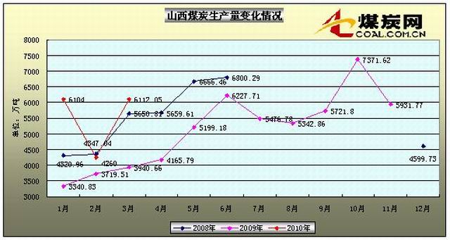 山西煤炭生產量變化情況