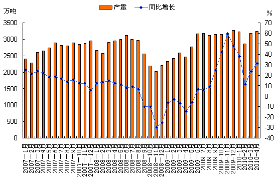 據(jù)統(tǒng)計(jì)數(shù)據(jù)顯示,2010年4月,我國(guó)共生產(chǎn)焦炭3244.6萬(wàn)噸,比去年同期多生產(chǎn)776.4萬(wàn)噸,同比增長(zhǎng)31.5%;截止到今年4月份,全國(guó)累計(jì)生產(chǎn)焦炭12555.4萬(wàn)噸,累計(jì)比去年同期增加2719.2萬(wàn)噸,增長(zhǎng)幅度為27.6%。