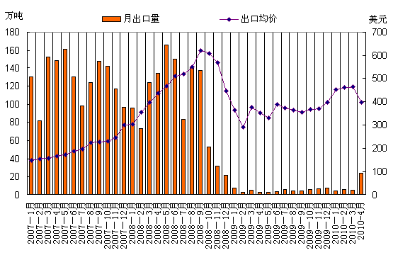 4月份國(guó)內(nèi)鋼材市場(chǎng)沖高回落,因此對(duì)焦炭等原料采購(gòu)積極性不高,盡管受煤價(jià)支撐焦炭?jī)r(jià)格基本沒(méi)有下調(diào),但是成交情況不樂(lè)觀,滯銷(xiāo)嚴(yán)重,出口意向漸濃。另外,4月份國(guó)際鋼材市場(chǎng)回暖,歐盟27國(guó)粗鋼產(chǎn)量為1542萬(wàn)噸,同比增長(zhǎng)64%,環(huán)比下降0.8%;獨(dú)聯(lián)體粗鋼產(chǎn)量為925萬(wàn)噸,同比增長(zhǎng)28%,環(huán)比增長(zhǎng)0.4%,因此焦炭需求量較大。同時(shí),國(guó)際煉焦煤價(jià)格也相對(duì)較高,澳大利亞主焦CIF價(jià)230美元左右,高成本支撐國(guó)際焦炭?jī)r(jià)格過(guò)高,因此國(guó)外鋼廠把采購(gòu)目光轉(zhuǎn)向中國(guó),使得中國(guó)焦炭出口領(lǐng)域在蕭條了一年多以后迎來(lái)第一個(gè)春天。