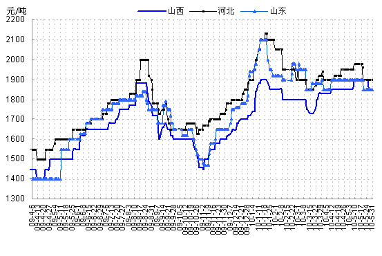 【華北地區(qū)】5月份華北地區(qū)焦炭市場(chǎng)走勢(shì)較弱。月初,唐山地區(qū)執(zhí)行河北焦炭市場(chǎng)指導(dǎo)價(jià)格,二級(jí)冶金焦含稅出廠價(jià)已達(dá)1980元,但鑒于鋼材市場(chǎng)持續(xù)疲軟,鋼廠普遍虧損,被迫無(wú)奈之余,鋼廠只能將壓力向原料市場(chǎng)轉(zhuǎn)移,不斷打壓焦炭?jī)r(jià)格,大部分鋼廠采取限采、停采的措施迫使焦炭降價(jià)。焦化企業(yè)庫(kù)存日漸增多,逐漸接受鋼廠的降價(jià),本月以來(lái)華北大部分地區(qū)焦炭?jī)r(jià)格下調(diào)了80-100左右,成交仍不樂(lè)觀,后期是否能夠好轉(zhuǎn)仍要看鋼材市場(chǎng)的后市。