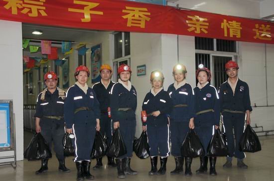 6月16日是我國傳統節日端午節,當天夜班,淮北礦業楊柳煤礦組織婦女協安員、青安崗員深入井下開展“端午粽子香、親情送叮囑”活動,為節日奮戰在10414機巷和10412機抽巷的一線職工送上粽子、雞蛋和純凈水,圍上印有“安全為天”的毛巾,并向師傅們送上了節日的祝福和安全叮囑。