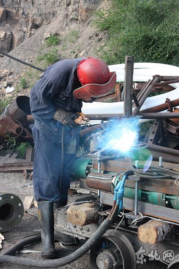 技術(shù)人員現(xiàn)場(chǎng)對(duì)排水器材進(jìn)行焊接。