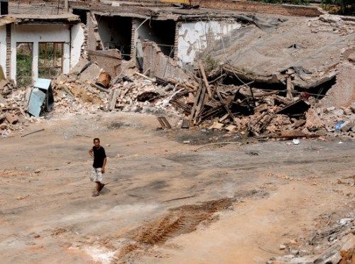 7月31日,工人李福榮從爆炸現(xiàn)場(chǎng)走過。