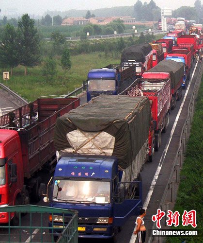近年來,京藏高速公路呼包段的車流量迅猛增長。特別是今年以來,全國有20多個省份的運煤車輛來內蒙古西部地區拉煤,按交通規范當量折算,平均每天有45000輛車通行呼包高速,遠遠超出了設計的最大通行能力,通行壓力倍增,交通擁堵頻繁發生,動輒連堵幾天、綿延上百公里。