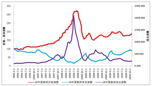 1、CR中國(guó)焦炭?jī)r(jià)格指數(shù)走勢(shì)分析