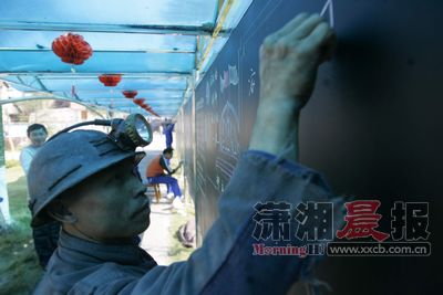 這天是周五,資江煤礦的礦區里,十余名身著工作服的礦工正在寫黑板報,每個班組一塊,礦工推舉出的“秀才”們正在認真辦報,內容有宣傳國家政策、班組工作動態、安全知識普及、礦工生活素描等等。