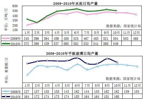 10 月份,建材市場繼續處于旺季,市場需求仍然旺盛,但受節能減排的影響,建材產品產量出現下降,兩者綜合作用,建材產品價格尤其是水泥價格出現大幅度的上漲。