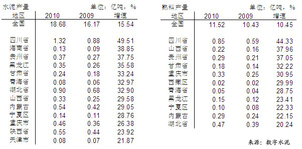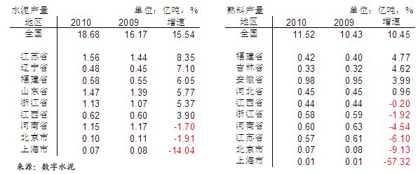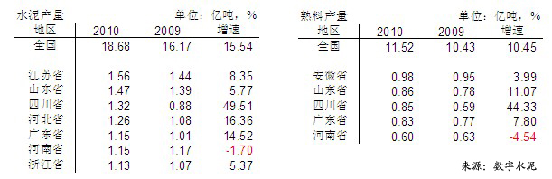 據國家統計局統計結果,2010年水泥、熟料產量揭曉。
