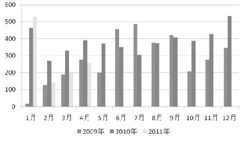 從煉焦煤的進出口量分析,可以看出進口量越來越大而出口量越來越小的明顯趨勢。2000年我國煉焦煤進口量為33.9萬噸,到2010年焦煤進口量已達4727萬噸,增長了約138%,目前澳大利亞、蒙古、俄羅斯及印度尼西亞是我國主要焦煤進口國。與此同時,焦煤的出口量卻逐漸下降,從2003年的1313萬噸下降到2009年的63.6萬噸。2011年冶金煤進口量較去年同期基本變化不大,但出口量有明顯增多,因此2011年1—4月份冶金煤整體的凈進口量有所減少。伴隨著中國對于煉焦煤的大量需求,煉焦煤價格水漲船高。