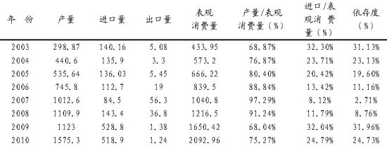 2003-2010年我國甲醇供需平衡