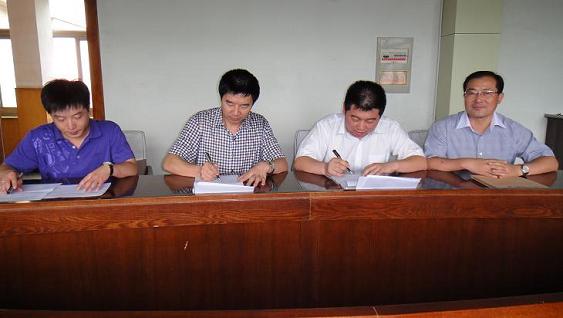 上圖:簽約現(xiàn)場,左二錢家營礦業(yè)分公司總經(jīng)理楊智華、左一錢家營礦生產(chǎn)技術部規(guī)劃室副總張廣堯、右二磐石容器集團總經(jīng)理李國軍、右一磐石生命科技總經(jīng)理李培學