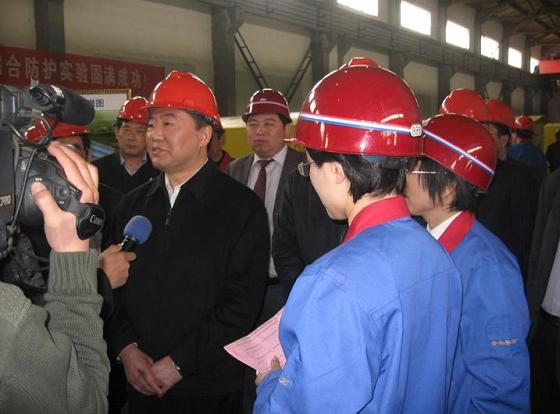 上圖:2011年4月10日安監(jiān)總局黨組成員黃毅總工程師在磐石科技救生艙車間接受媒體采訪,對磐石發(fā)展緊急避險設施項目給予充分肯定和鼓勵。