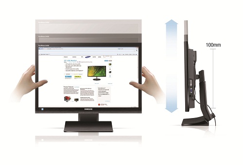 三星SA450提供了符合人體工程學(xué)設(shè)計(jì)的可調(diào)式底座,能夠支持垂直旋轉(zhuǎn)與上下移動,