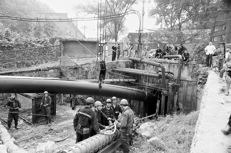 桑樹坪煤礦工作人員說,昨天上午,從西安取回來的化驗結果顯示是奧灰水,排除了較早相關人員認為是黃河水涌入的推斷。透水事故發生后,韓城煤炭局答應及時提供相關資料,以便于搶險,但是遲遲不提供禹昌煤礦井下的圖紙,給搶險造成了很大困難。到昨天,桑樹坪煤礦已經有4條水管開始排水,其余的管道仍在緊張安裝之中。