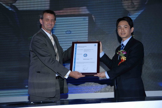 國際權威認證機構TUV南德意志集團南中國區董事、深圳分公司總經理Mr.RobertOstendorf在發布會上向英威騰頒發了中國工控行業首張TUV-Mark證書,同時Mr.RobertOstendorf表示,英威騰Goodrive300變頻器通過了TUV的全面測試,獲準在產品上加貼TUV-MARK標志,展現了英威騰強大的技術實力和英威騰產品的品質保障。
