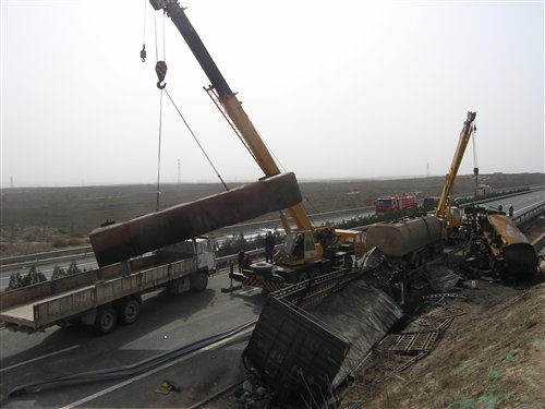2月19日上午8時許,青銀高速綏德往吳堡方向辛家溝處三輛貨車追尾,其中一輛甲醇罐車泄漏,造成1人不幸遇難。