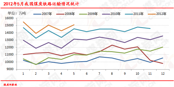| 鐵路運(yùn)量(萬(wàn)噸) | 15103 | 14579 | 524 | 3.6 | 73884 | 70300 | 3584 | 5.1 |