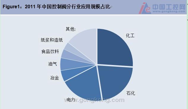 化工、石化和電力行業仍然占據著中國控制閥最為重要的市場的地位,化工和石化領域的業務增長也是拉動2011年控制閥市場的主要因素,預計該趨勢在未來幾年仍將延續。冶金行業由于結構調整和下游需求減少等原因依舊低迷,而發電行業由于“上大壓小”的政策和核電項目緩建等原因,市場增速低于平均水平。