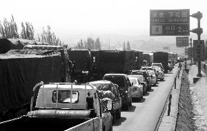 而在京新高速路上,被堵的大多數是運煤車。一位司機坦言,堵車增加了運輸成本,“本來費用是6000多,這一堵,會多出1000多塊錢。”