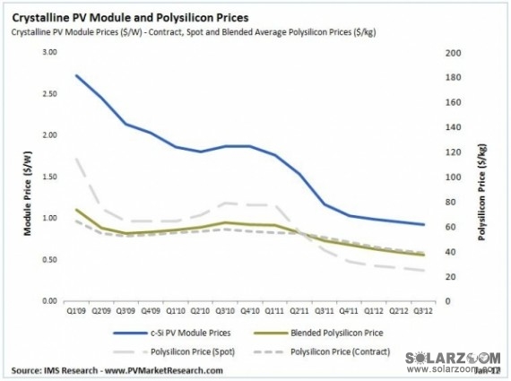 據(jù)業(yè)內(nèi)數(shù)據(jù)顯示,2012年光伏系統(tǒng)成本似乎持續(xù)下跌態(tài)勢,并且貫穿整個產(chǎn)業(yè)價值鏈。