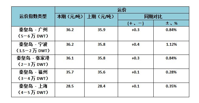 此表包含中國沿海(散貨)運(yùn)價指數(shù)-煤炭(秦皇島港航線)運(yùn)價指數(shù)的本期和上期數(shù),以及同比增減。