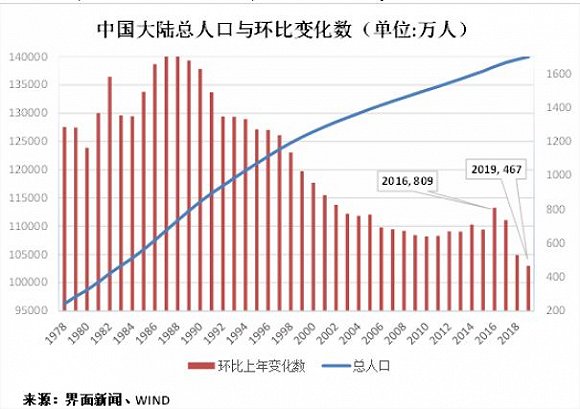 2019年,中國大陸總人口突破了14億人,全年出生人口1465萬人,相當于一年生出了丹麥+芬蘭+蒙古的總人口,全年人口凈增加467萬人,相當于一個新西蘭。