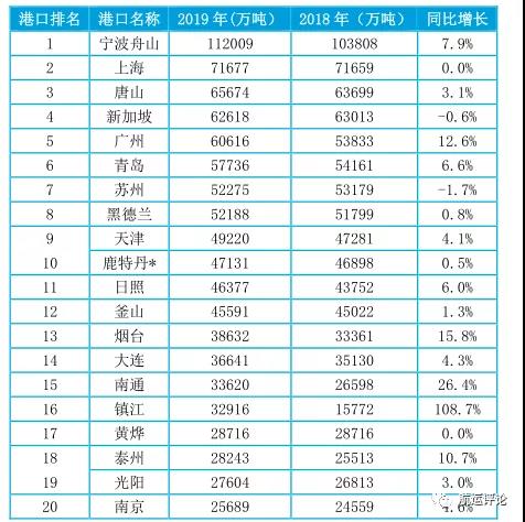 2019年,全球經貿環境整體不容樂觀,全球主要港口生產增速逐漸分化。全球前20大港口中,除中國港口吞吐量整體保持穩定上漲,其余均維持較低增速。