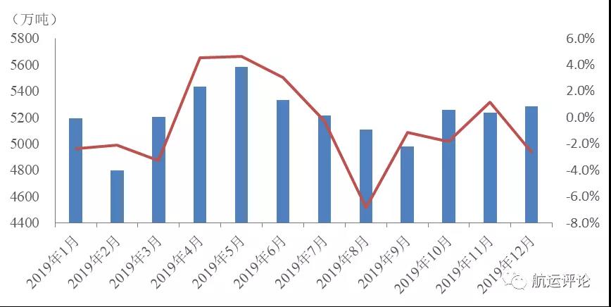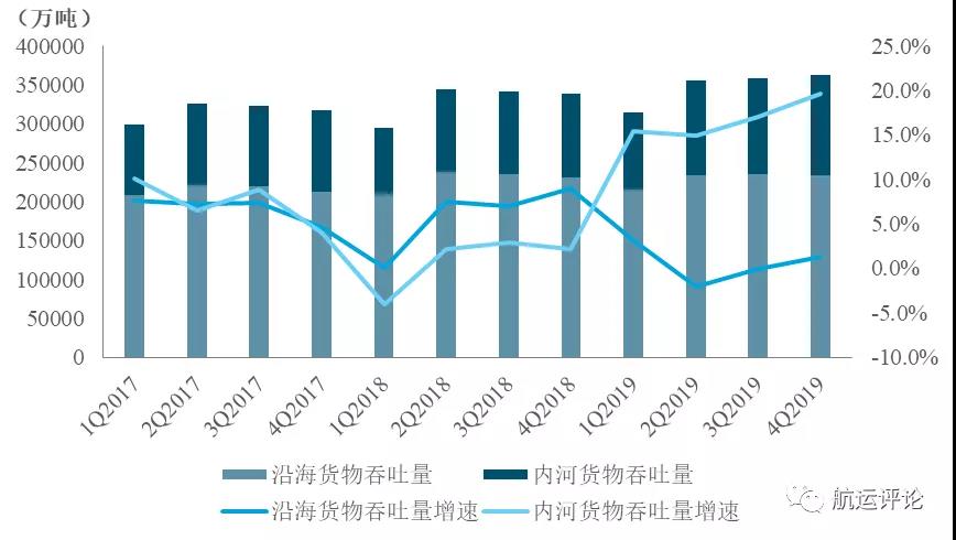 內需提振中國內河港口貨物吞吐量大幅增長2019年,中國面臨的經貿環境不容樂觀,GDP實際增速預計為6.1%,為1992年有統計數據以來的年度最低值;外貿進出口總值31.54萬億元人民幣,同比增長3.4%,與去年9.7%的增速相比放緩明顯。但中國國內需求穩步擴大,前11個月中國社會消費品零售總額同比增長8%,中國消費正在高基數的基礎上加快增長。在此背景下,中國港口貨物吞吐量總體保持較快增長,內需提振內河港口貨物吞吐量增長強勁,成為推動中國港口貨物吞吐量增長的主要動力。