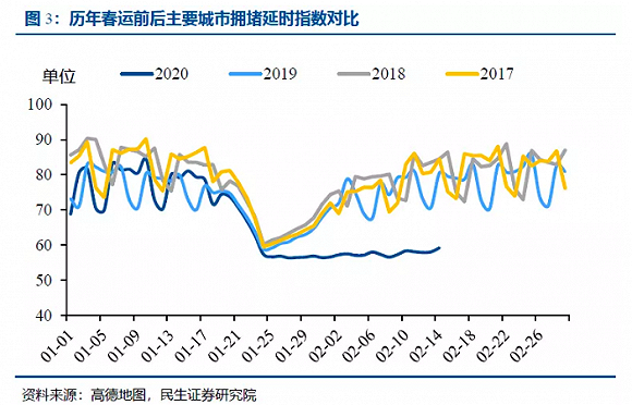 民生宏觀在日前發布的一份研報中從包括全國春運遷移指數、全國鐵路、道路、水路、民航發客總量在內的六個角度分析了當前的復工進度。