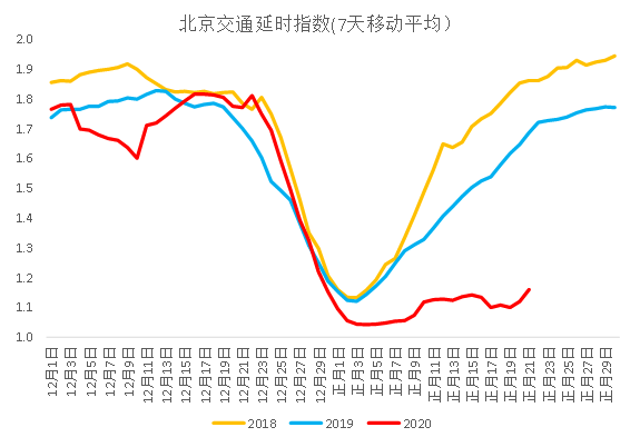 圖2:從交通擁堵指數看,北京交通量比往年農歷同期稀少