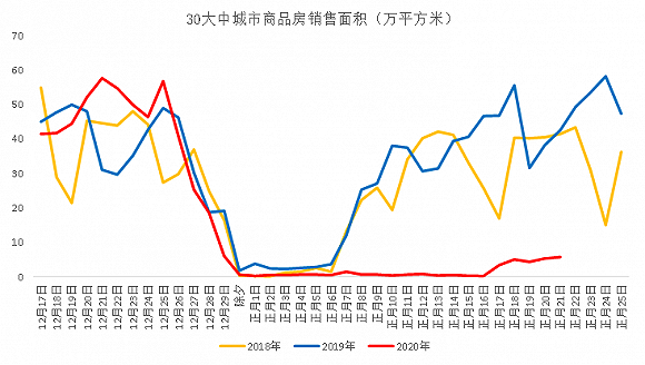 高頻指標顯示,新冠疫情對房地產銷售有明顯影響。政策上看,1月26日中國房地產協會號召“房地產開發企業應暫時停止售樓處銷售活動,待疫情過后再行恢復”。盡管有部分房企嘗試在線上銷售,但由于房產交易涉及的資金規模大,居民對線上購房的意愿不強,因而房企的這種探索效果并不佳。今年春節后,30大中城市商品房銷售面積回升幅度,明顯小于往年同期。