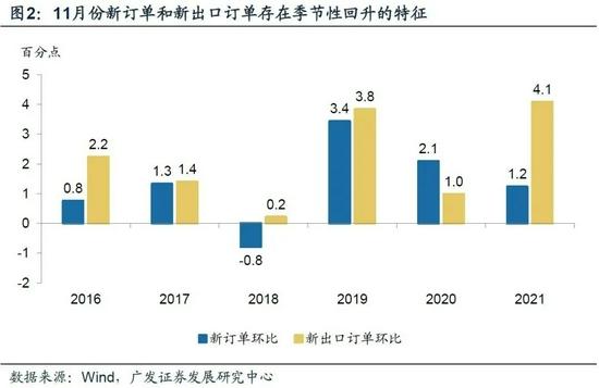 關于新出口訂單,我們進一步解釋下。本月全球景氣走勢存在同步性,美國、歐元區PMI也同樣在下行趨勢中出現了單月反彈,應與海外圣誕季臨近產生的需求環比回升有關。中港協指出,11月上旬由于惡劣天氣因素影響,部分港口停工,但港口反饋11月份圣誕貨品出口旺盛,預計外貿集裝箱出口將好于10月。