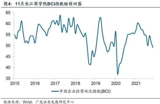 第六,不過需要提示的是,對于經濟在11月的環比反彈,不可有太強預期:(1)如前所述,反彈與限電限產影響的消除、海外圣誕季季節性有較大關系,影響不具備可持續性;(2)代表更持續預期的PMI就業、生產經營活動預期分項均在低位徘徊;(3)歷史上對經濟拐點反映的準確度較高的長江商學院BCI指標本月繼續下行。