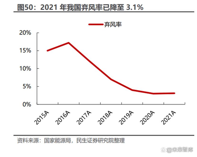 “十三五”期間受限于外送通道的建設(shè),以及風(fēng)光電源由于自身出力對(duì)電網(wǎng)的沖擊性較大,國(guó)內(nèi)棄風(fēng)、棄光率較高,消納問(wèn)題始終是懸在風(fēng)光發(fā)展之路上的“達(dá) 摩利克斯之劍”。“十四五”期間通過(guò)大規(guī)模的電網(wǎng)投資以及特高壓建設(shè),三北地區(qū) 棄風(fēng)、棄光率逐漸下行,但是隨著第一批、第二批風(fēng)光大基地項(xiàng)目開工建設(shè),西部 新能源基地棄風(fēng)棄光率問(wèn)題仍值得關(guān)注。