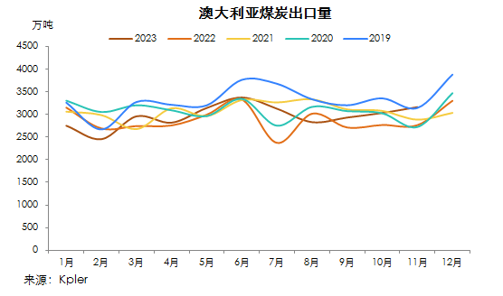 今年1-11月份,澳大利亞煤炭出口量累計3.26億噸,同比增4.11%。
