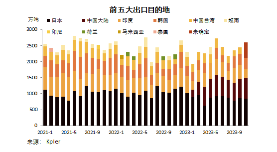 分國別看,11月,澳大利亞向日本出口煤炭840.35萬噸,環比降1.34%,同比降27.70%;向中國大陸出口640.32萬噸,環比增4.84%,上年同期為零;向韓國出口370.80萬噸,環比增9.59%,同比增13.71%。