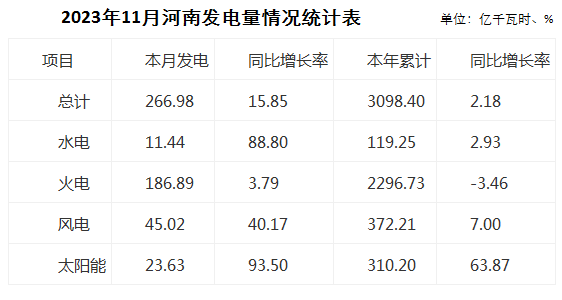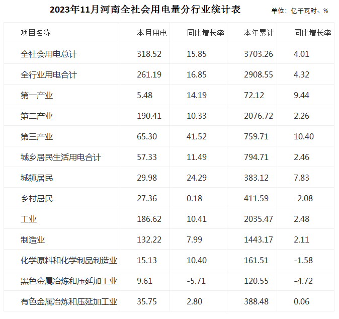 國家能源局河南監(jiān)管辦公室12月19日發(fā)布數(shù)據(jù)顯示,2023年11月,河南省全省全社會(huì)用電量318.52億千瓦時(shí),同比增加15.85%;1-11月累計(jì)用電量3703.26億千瓦時(shí),同比增加4.01%。