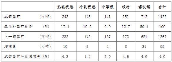 3月上旬,5大品種鋼材社會庫存環比均有所上升,增量、增幅有所回落,其中螺紋鋼仍為增量最大品種,具體見下表。