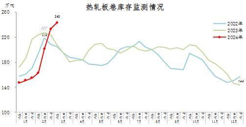 3月上旬,熱軋板卷庫存243萬噸,環比增加10萬噸,上升4.3%,庫存上升幅度有所回落;比年初增加99萬噸,上升68.8%;比上年同期增加36萬噸,上升17.4%。