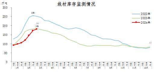 3月上旬,線材庫存181萬噸,環比增加8萬噸,上升4.6%,庫存上升幅度有所回落;比年初增加98萬噸,上升118.1%;比上年同期減少3萬噸,下降1.6%。