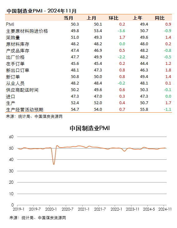 11月份,隨著一系列存量政策和增量政策持續協同發力,制造業PMI在景氣區間上行,升至50.3%,擴張步伐有所加快。