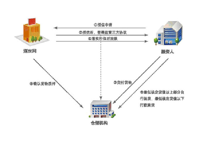 現(xiàn)貨質(zhì)押融資業(yè)務(wù)是指煤炭網(wǎng)根據(jù)客戶的申請(qǐng),以客戶合法擁有的煤炭貨物為質(zhì)押物的融資授信業(yè)務(wù),煤炭網(wǎng)按照市場(chǎng)價(jià)格估值后,煤炭網(wǎng)委托第三方倉(cāng)儲(chǔ)機(jī)構(gòu)對(duì)貨物在煤炭網(wǎng)確定的最低價(jià)值范圍內(nèi)進(jìn)行監(jiān)管,貨物在煤炭網(wǎng)認(rèn)證倉(cāng)庫(kù)條件下,煤炭網(wǎng)負(fù)責(zé)對(duì)出質(zhì)貨物進(jìn)行監(jiān)管,一并承擔(dān)擔(dān)保及回購(gòu)風(fēng)險(xiǎn)。